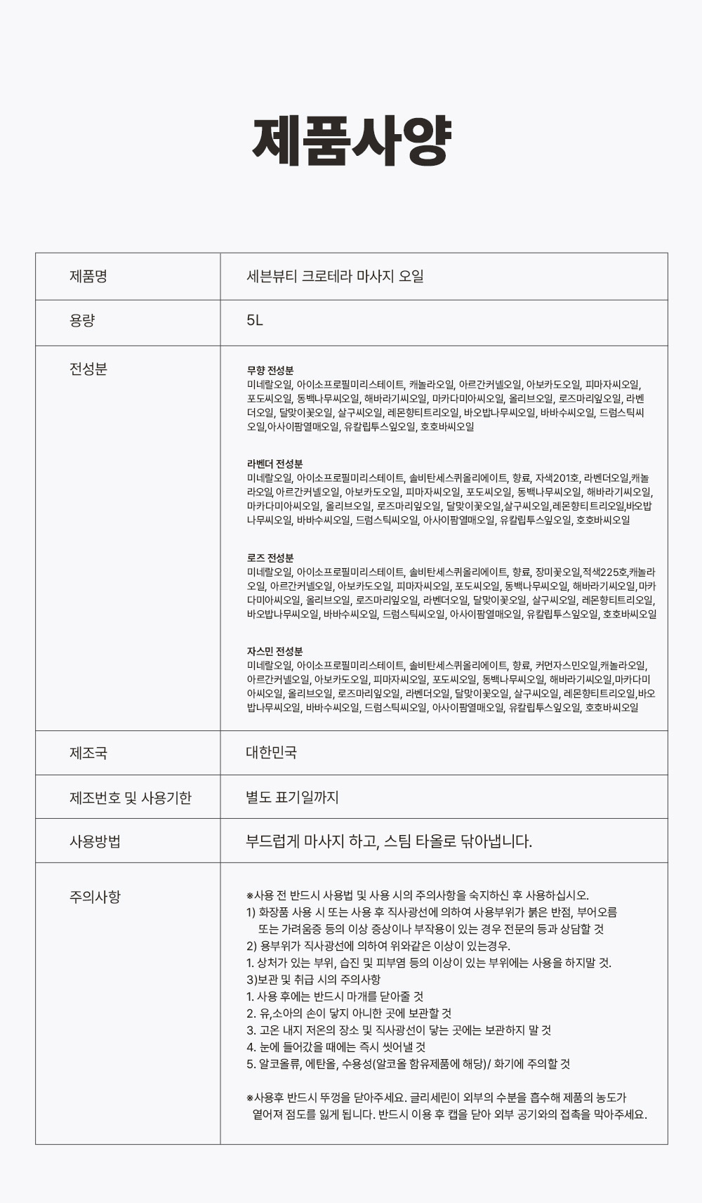 | 제품명 | [크로테라] 컬러테라피 퍼플 아로마 미네랄 마사지오일 라벤더 5L |