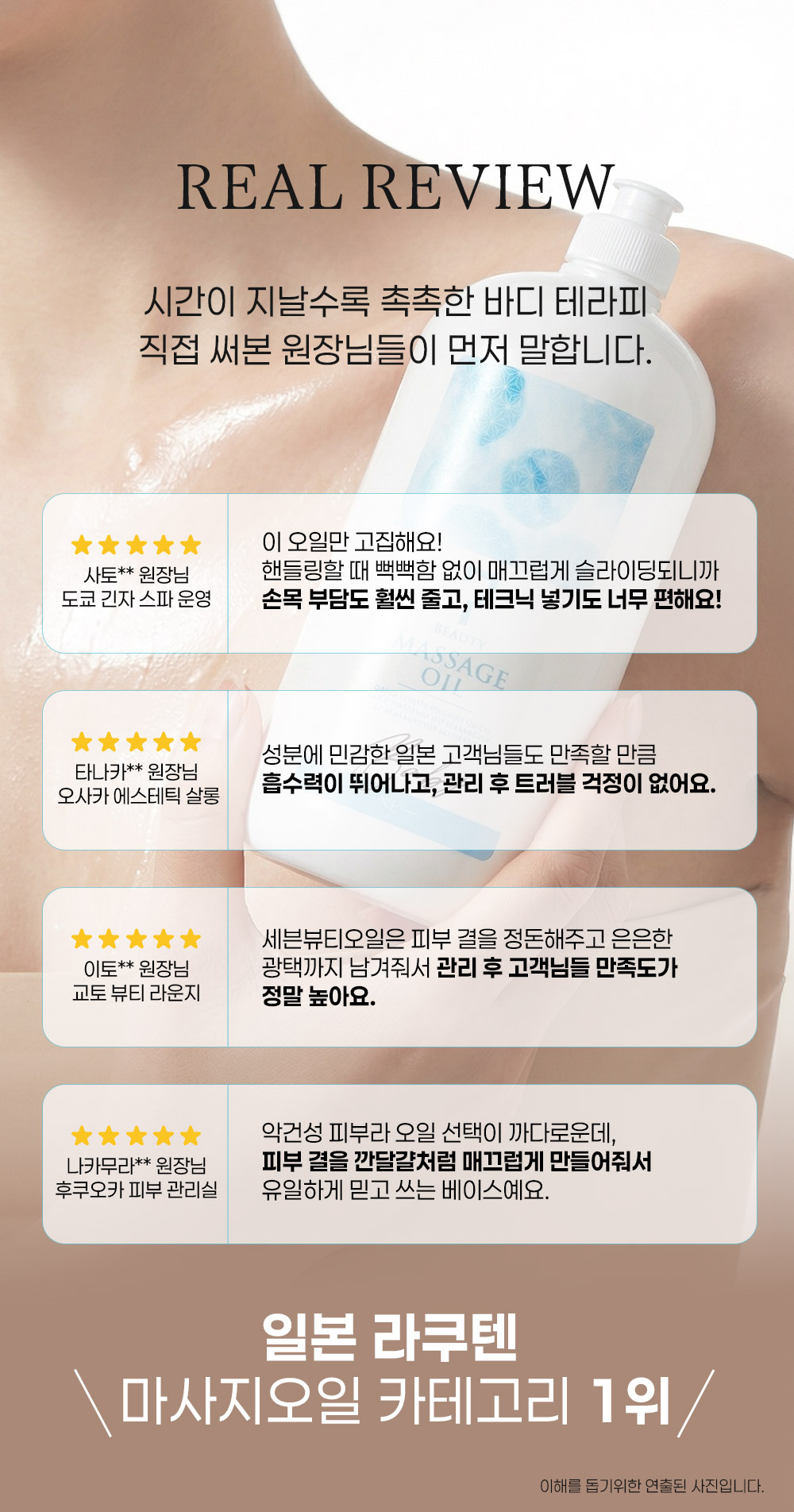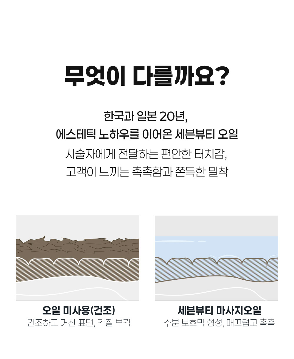 부드러운 롤링감과 보습감을 동시에 전달하는 프리미엄 마사지오일