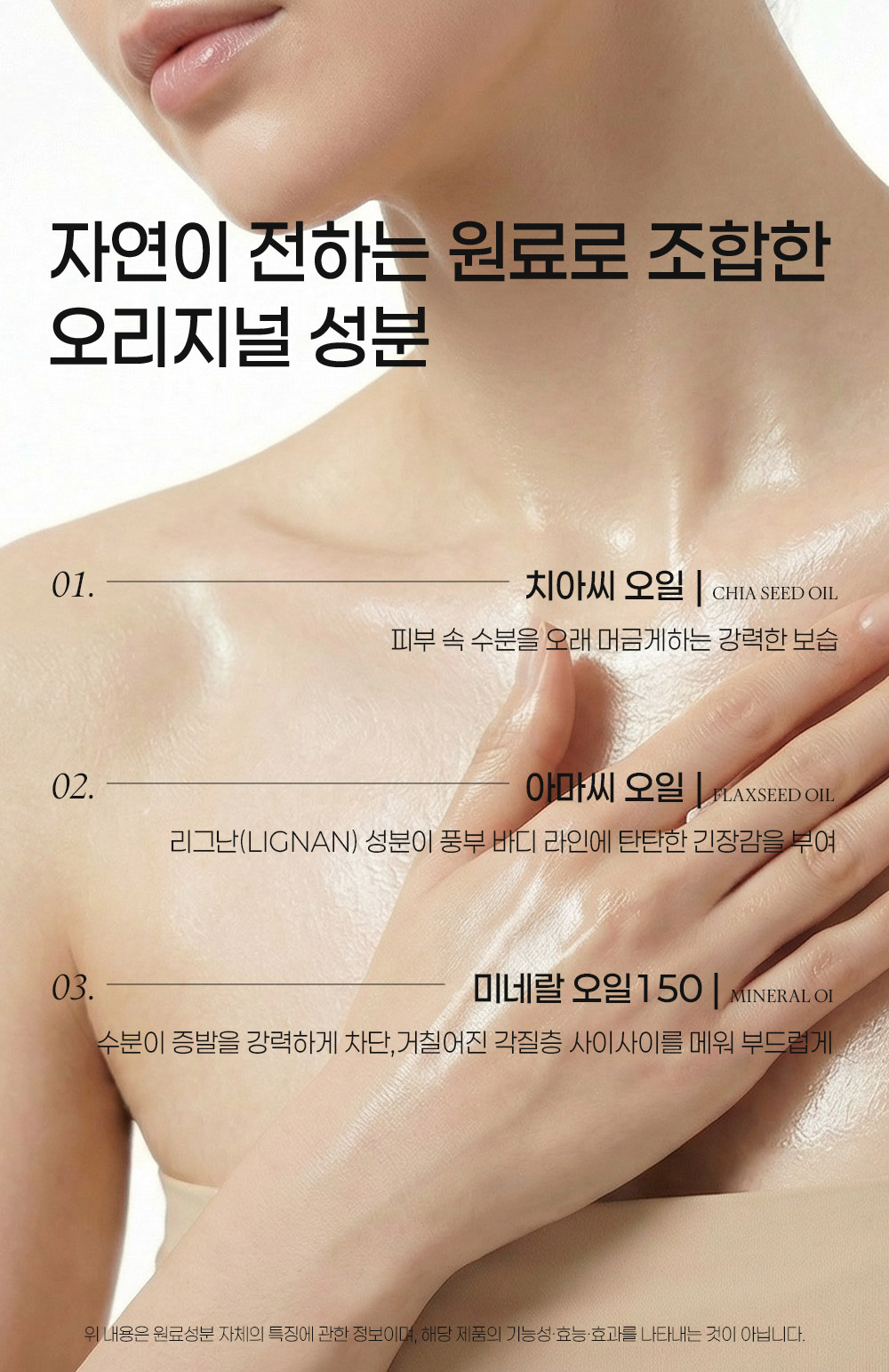 | 제품설명 | 최적의 점도로 피부 마찰을 최소화하고, 뛰어난 발림성이 끈적임 없이 촉촉한 보습막을 형성합니다. |