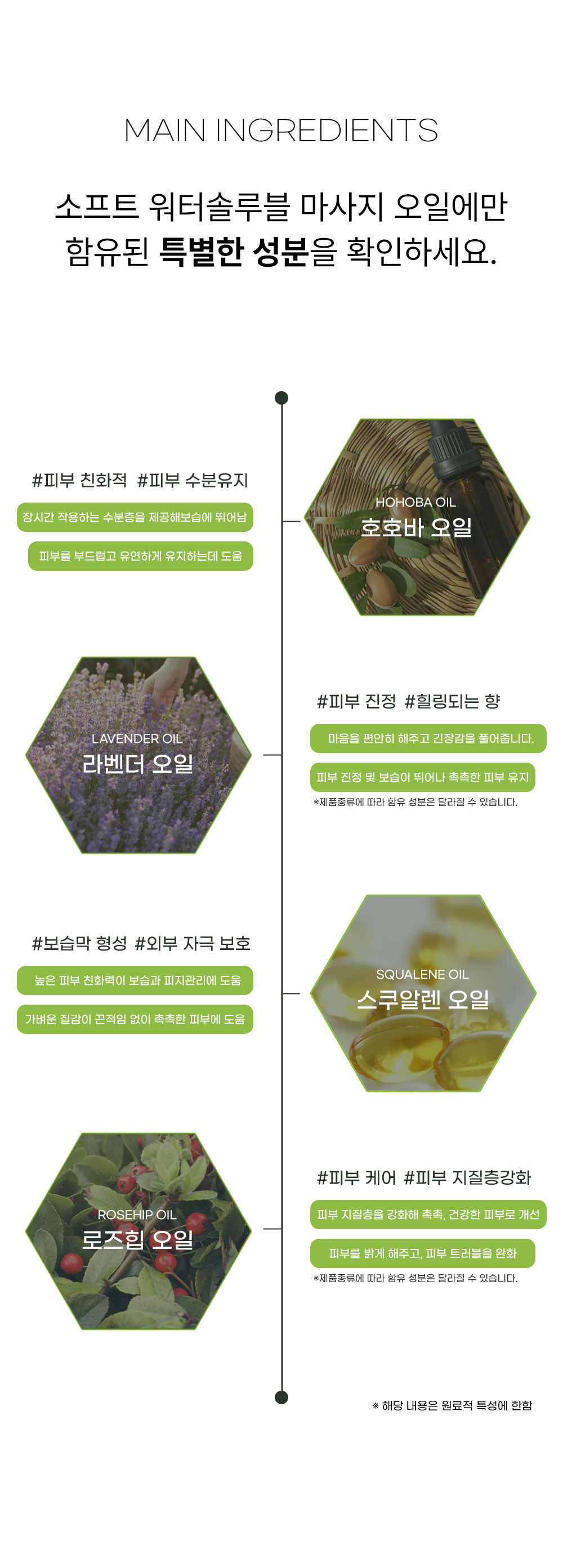 | 전성분 | 미네랄오일, 피이지-20글리세릴트라이아이소스테아레이트, 올리브오일, 토코페릴아세테이트, 스쿠알란,마카다미아씨오일, 시어버터, 아르간커넬오일, 호호바씨오일, 로즈힙열매오일, 동백나무씨오일 |
