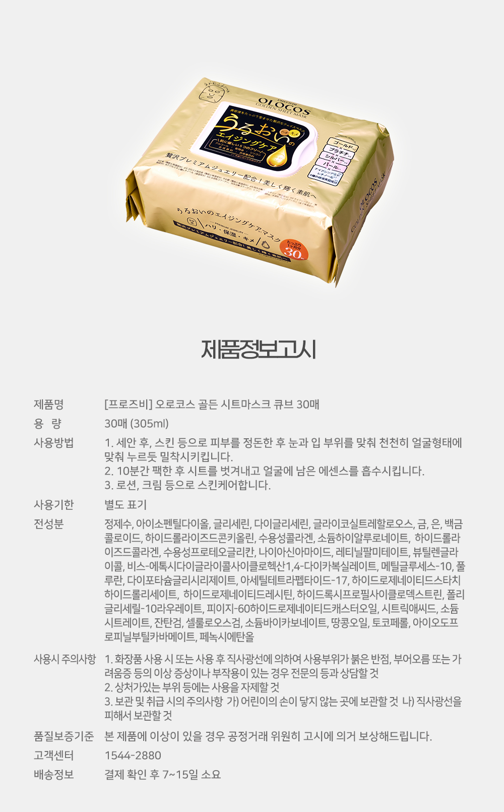 | 제품명 | PROSBi [해외][프로즈비] 오로코스 골드 시트마스크 큐브 30매 |