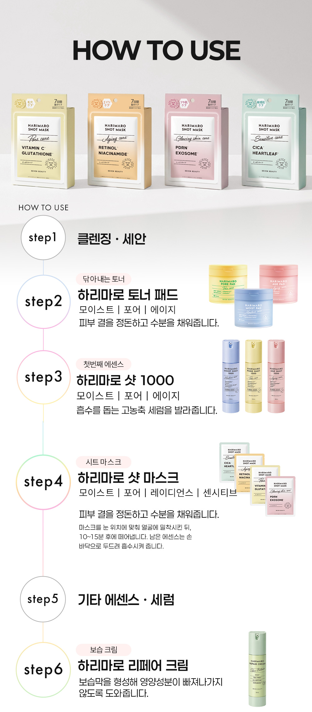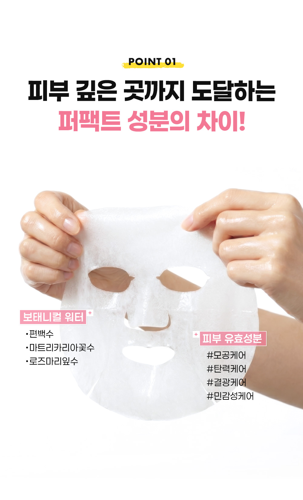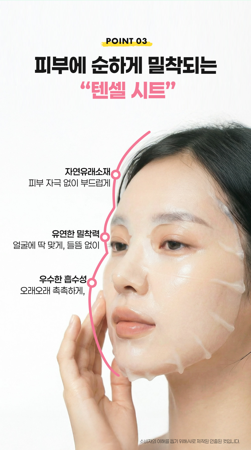 | 사용방법 | ① 세안 후 토너로 피부결을 정돈해줍니다. ② 파우치에서 마스크 시트를 꺼내어 양쪽 눈을 기준으로 이마, 코,