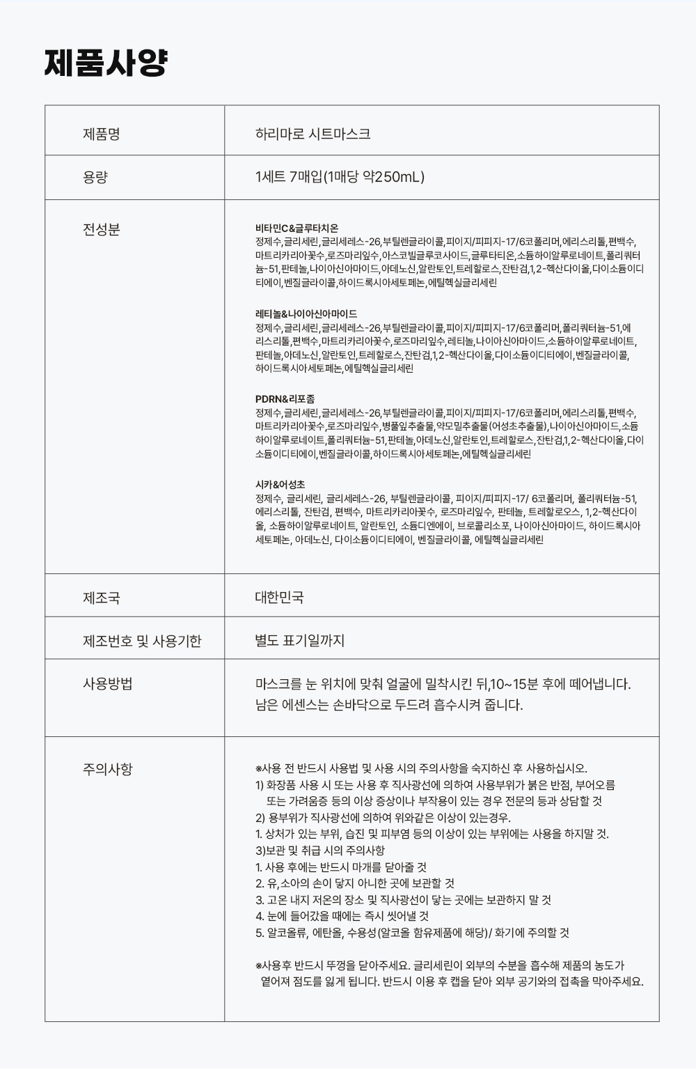 | 제품명 | 하리마로 시트마스크 비타민C&글루타치온 |