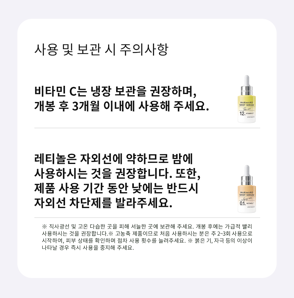 ※ 고농축 제품이므로, 처음 사용하시는 분은 주 2~3회부터 시작하여 피부 상태를 살피며 사용 횟수를 조절해 주십시오. |