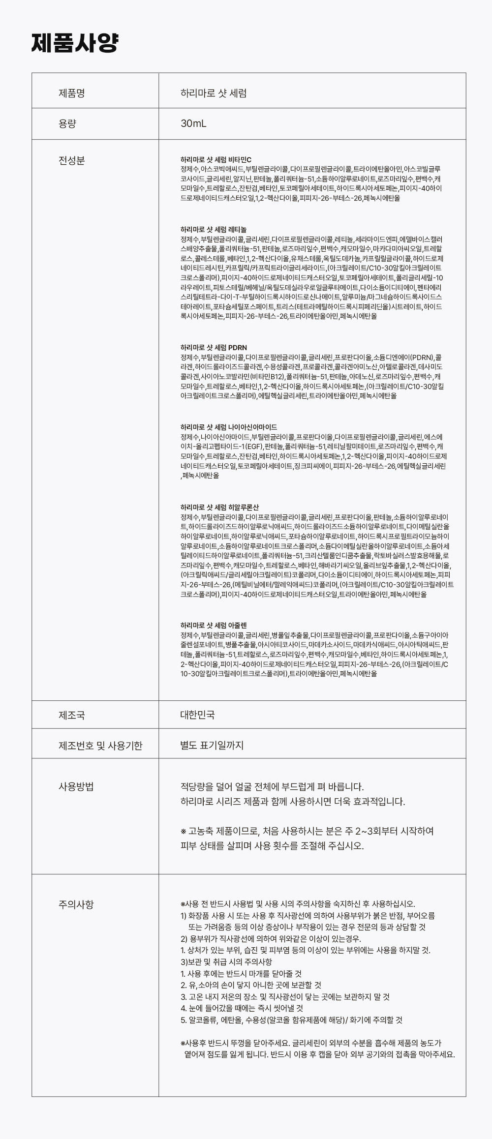| 제품명 | 하리마로 샷 세럼 아줄렌 30mL |